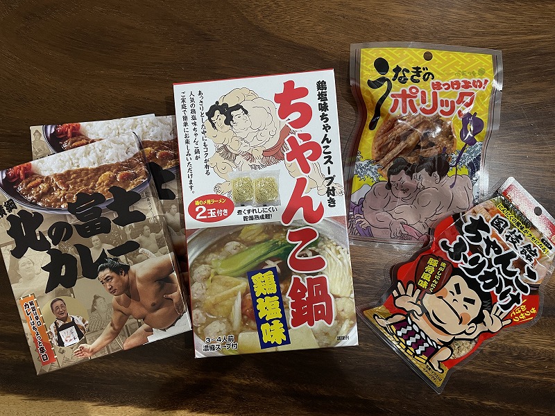 関取(咳とり)アメ、一番人気の北の富士カレー、ちゃんこ鍋の素、