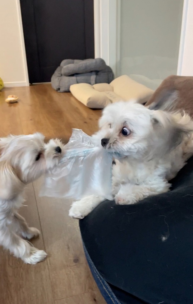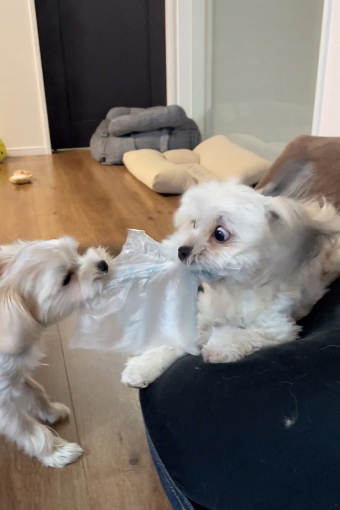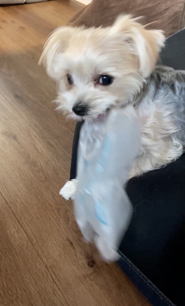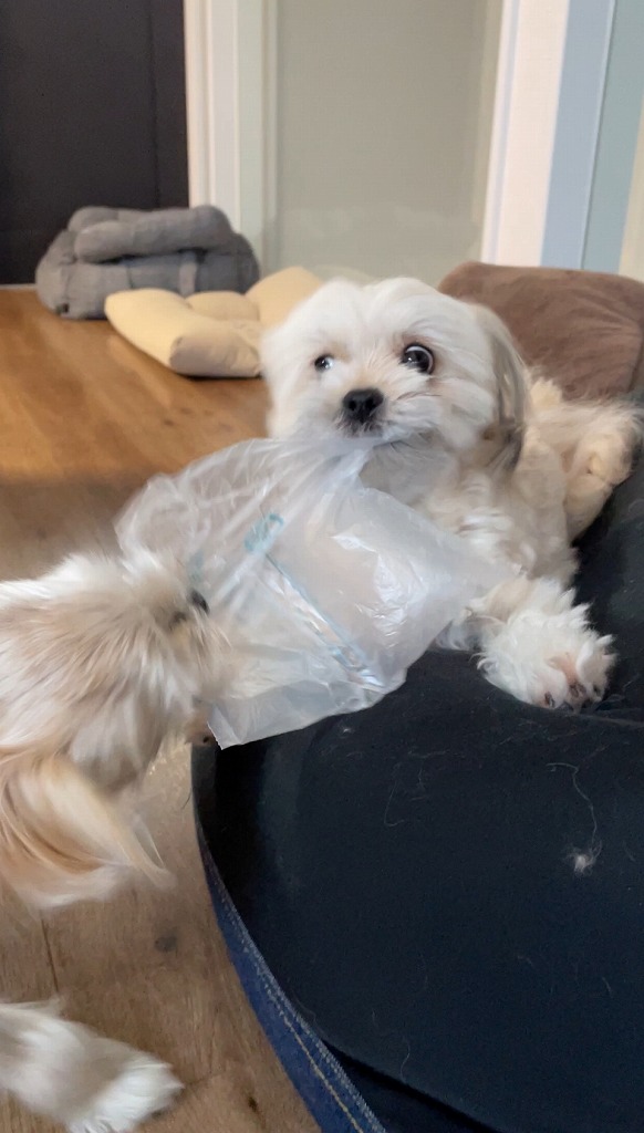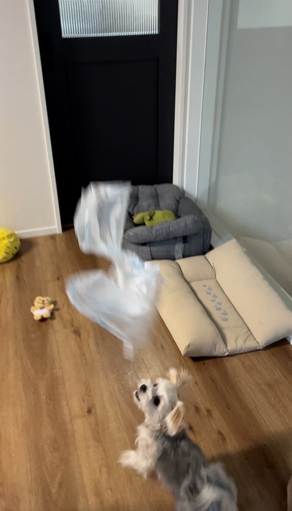 ビニールを食べたらだめなので、少しだけ遊んだら没収するけど