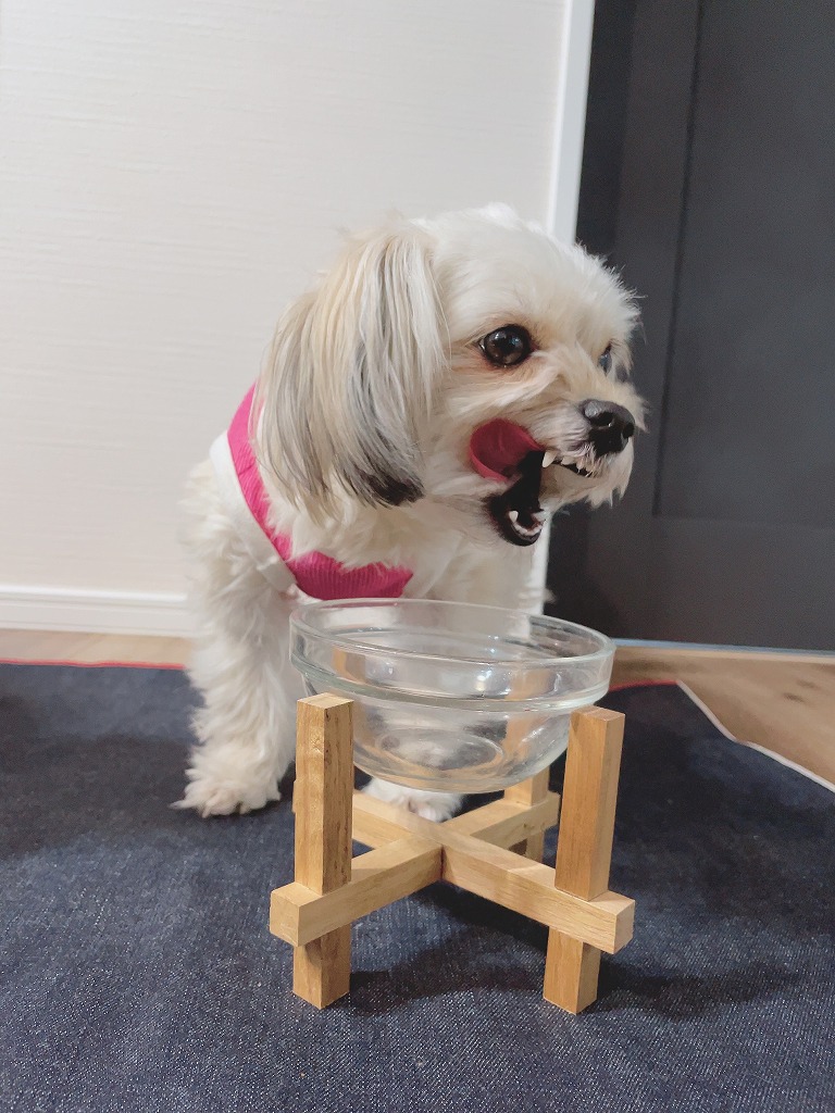 最初にお皿にフードを入れて「よしっ!」と言葉と同時に…