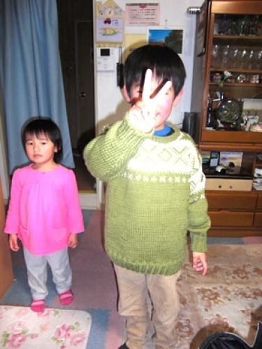 本日は叔母の家に、孫を見せに行きました、何時も電話口で、如何誰に似てる??下の孫は、1回も観て無いのと言のを、息子に言と、休みだから行こうかと車で連れて貰いましたよ、久し振りの叔母は元気に成り、色艶も良くて大喜び叔父も 孫達に(お爺ちゃん)と呼ばれて 大喜びをして居ましたが多分今頃は疲れて寝て居るでしょうね、りかちゃんにセーターを着せました、少し大きいですが、吊るすより、大きさが良く判りますよね