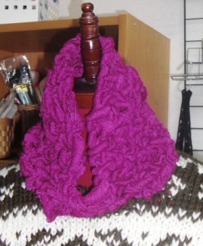 今週もメンバーが揃いませんね、未だお正月の仕事がのこっているのですね、朝1番に整形に行き電気を掛けて、向かいの耳鼻咽喉科に行きました生徒さんに病院を変わったらと 言れていたので、私も相思ていましたので初めにビックリしたのは、中耳炎では無い、鼓膜が破れて無い、??此の20年程、耳のケアーをしていたのは何??蓄膿に右の鼻が成っている??前の病院では何処も悪く無い?・耳鳴りは年の性、聞こえが悪いのも年の性仕方が無いですよ、だったのに、新しい所では、鼓膜に空気を通して、振動を良くすれば聞こえが戻る、耳鳴りも増しに成ります、只時間が掛かっていたので、即治る事は無いですよ、頑張って通いますね、ネックウオーマ編み上がりました、