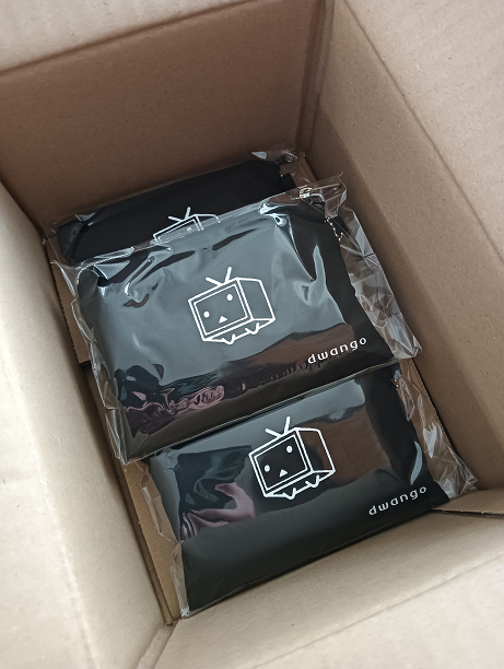 KADOKAWAロゴのダンボールです。テレビちゃん収納ケース付きエコバッグx3