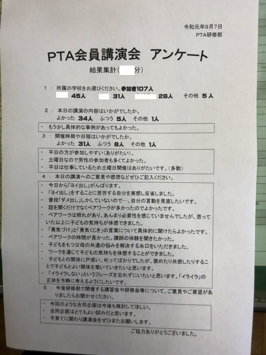 ・子育てに関わる講演会をぜひまたお願いします。