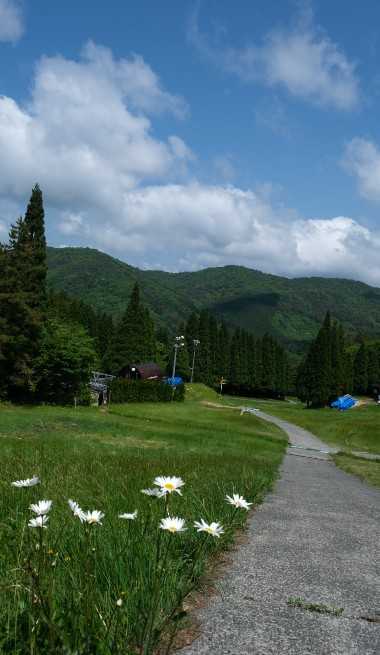 ゲレンデの白い花と一兵山家(いちべいさんが)山