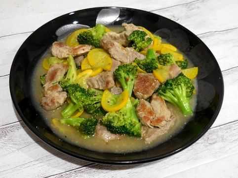 ブロッコリーの緑に、黄色のズッキーニが彩りを添えて、美味しそう~