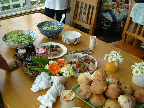 今日は料理教室の日でした。今日は27℃超える暑さで子供も外遊びさせて貰えて楽しそう!私も料理にオシャベリにとても癒されました(*^_^*)今回は画像手前のレーズンパン作り!簡単なのにどうしてこんなに美味しいの~~?お持ち帰り用の生地もいただけて嬉しい♪アクアパッツアと大麦入りサラダフライパンにニンニクと鮭を入れて焼きアサリとトマト等と蒸し焼きにするだけなのにこんなにオシャレで美味しい料理になるなんて(゜o゜)今回はチャイブやオレガノをトッピング♪我が家で育てていながらなかなか上手く料理に使えてなかったので今度やってみよう☆とろとろプリンとシフォンケーキ良質の美味しい卵のせいか簡単なのにすごーく美味しかった(*^_^*)近いうちまた作ってみよう♪プリンを今日はじめて食べた息子・・・一口食べたら、ウヒャって笑いその後飲み物のように飲んじゃってます^m^