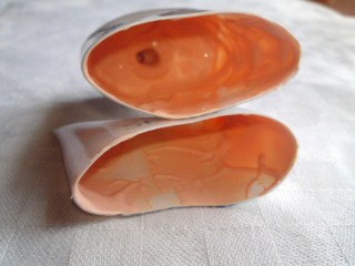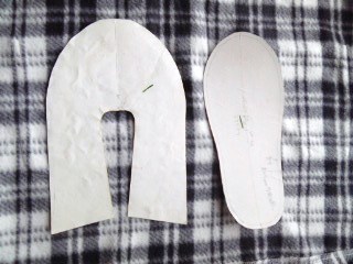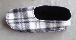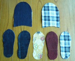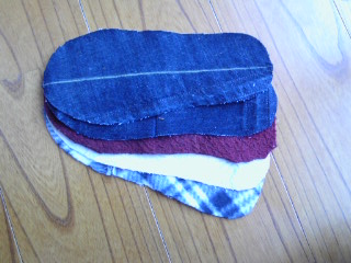 表と底を縫ったものを合わせて2回同じところを縫いました。ひっくり返して出来上がり。(美しいシルエット、表・裏・3枚入れ厚くしている底布、無駄布を使わない、必要分のミシン縫いだけなど)よく考えられた型紙です。無駄な飾りがないので軽くて履きやすいです。
