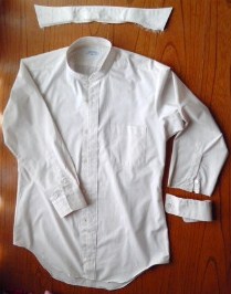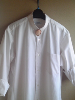 紳士ワイシャツのエリ・カフスを取りました。襟はほどき取り去り、スタンドカラーにします。少しほどくと簡単に取れます。アイロンをかけてからミシン縫いをするときれいにできます。袖はカフス部分を切り取り、三つ折り縫いにします。白ワイシャツのブラウスは洗濯機でごしごし洗えるし乾きも早く丈夫です。見た目には上品な清潔感が漂います。応用…色ボタンに付け替えたり、刺繍をしてもいいです。