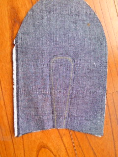 表地デニム・裏地ポリエステル・底デニム&ポリエステル他を使用し生地を切り揃えました。(側面の切り込みはミシン縫いしてから切ります。)アイロンかけました。アイロン所要時間5分