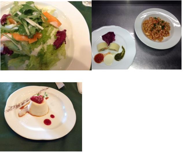 メニュー サラダ パン 野菜のテリーヌ ひき肉とトマトソースのショートパスタ パンナコッタ コーヒーor紅茶イタリア料理シェフに、家庭で簡単に作れるメニューを調理・説明していただき、試食しました。感想>料理を教えていただき、ほぼフルコースの食事が2000円。「高いと思う」か「安いと思う」かは評価の分かれるところです。食事はもう少し量があったほうがいいと思いましたが、デザートのパンナコッタを食べコーヒーを飲むと満腹になりました。