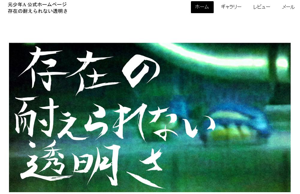 元少年Aが公式ホームページを立ち上げました。ギャラリーに自撮りが載っています。