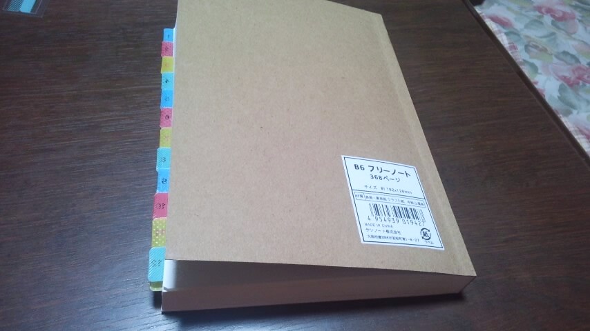 セリアでフリーノートを買い「来年の日記帳にしよう」と思いました。368ページですから、「ほぼ日記帳と同じ」1日1ページです。ほぼ日記帳は3000円~5000円です。買えばいいですが、主婦にとっては高価です。日ごろの節約ぐせがついていてつい安い方を選択してしまいました。売り場のそばにきれいな4色のインデックスシールがあり、つけてみたくなりました。付けてみればかわいくて愛着がわきました。ただ、材質が心配です。途中で分解しなければいいなと思っています。ブックカバーをつけた方がいいかな?