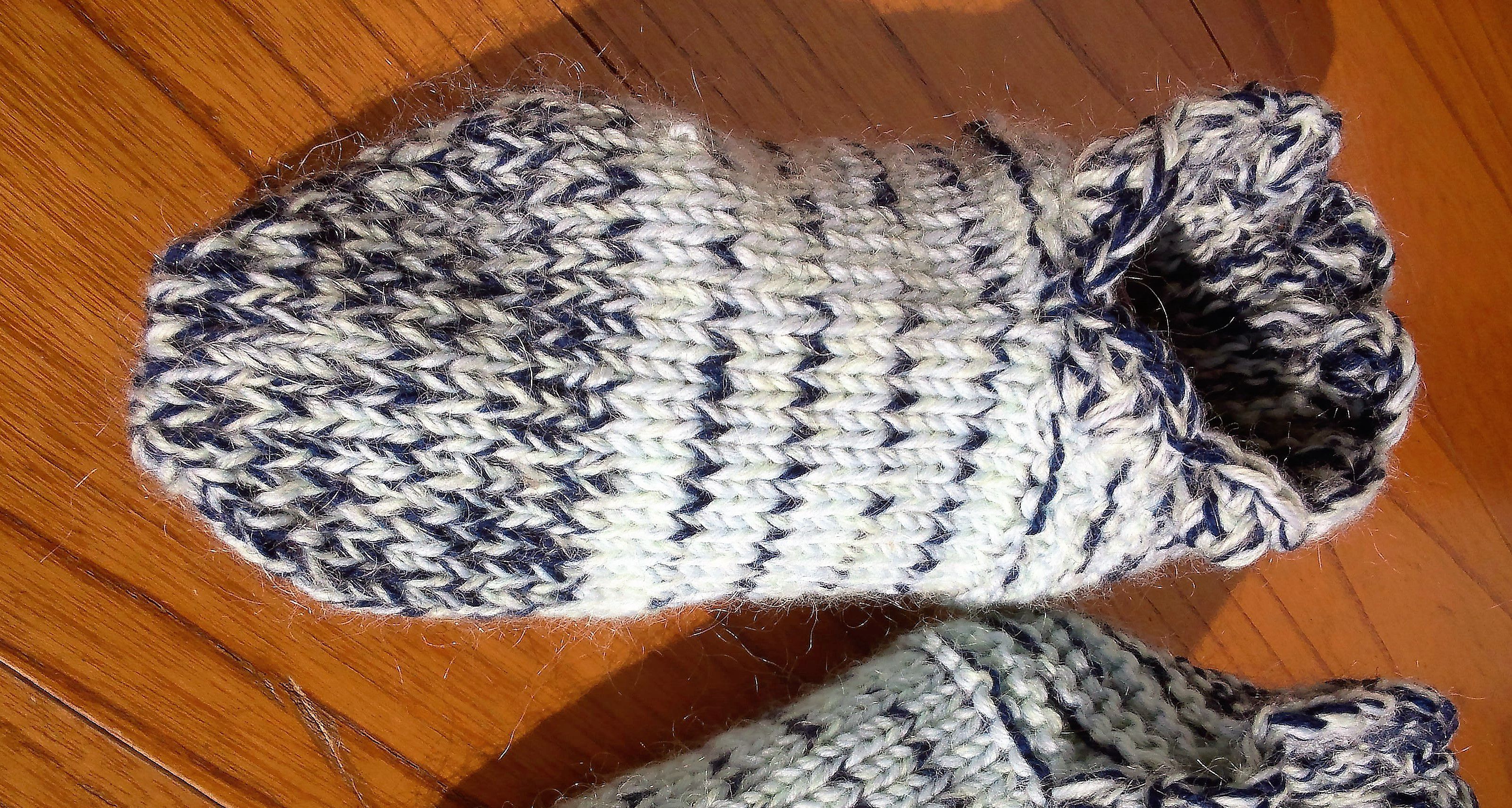 足のくるぶしまである靴下カバーを編みました。慣れると片方を一日で編めます。