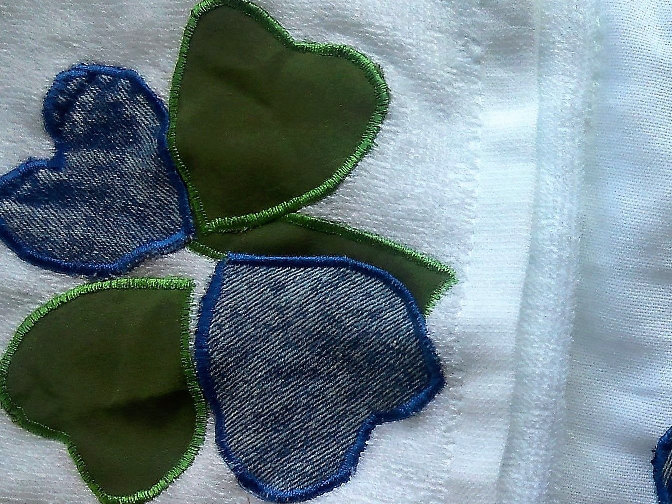 「NHKハンドメイド」を見ていて、アップリケで「四葉のクローバー」を作りたくなりました。「べっぴんさん」で使われているクローバーです。テレビでは手で刺繍していましたが、私はジグザクミシンで縁どりしました。白タオルにアップリケし、下にはミシンでひらがな刺繍し自分用にしました。家族用も作りました。アップリケ用生地もわずかに使うだけで簡単にできますが、ジグザクミシンをかけていて、「こんなことしていていいのかしら?」と退屈になってしまいます。数多く作ればそれなりに上達するようです。