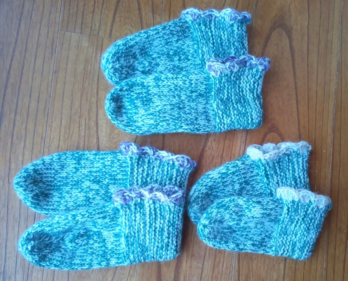 ウール100%とモヘア入り系とで靴下カバーを編みました。丈はくるぶしまであり暖かいと好評です。 作り方上記の製図は以前アップした作り方です。