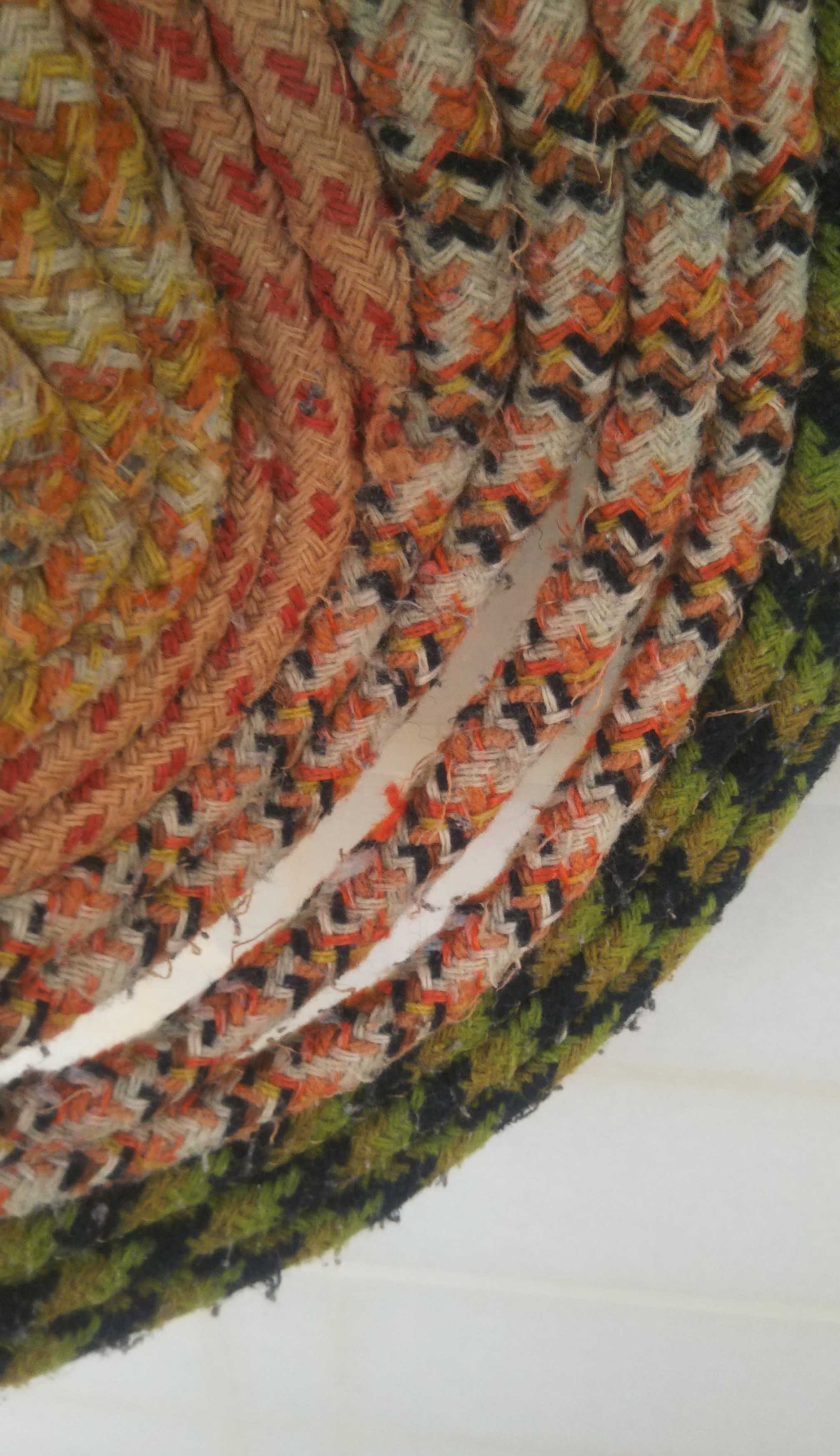 足元へ敷いていたマットです。作りは安物らしいですが、洗うときれいになるのでウールの毛糸らしいです。洗濯機で洗ったら、ほつれました。私は少しぐらいのほつれは直します。黒木綿糸でチクチク1時間ほど縫いとじしました。まだまだ使えます。(#^.^#)
