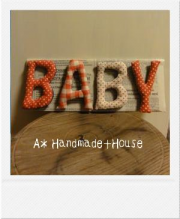アルファベット文字作ってみました♪ 今回は、BABYとKIDsとROOMとWELCOME。 裏側にプッシュピンを付けましたので、木のプレートに、直接壁に押し付けて使ってもらえます。 WELCO!?画像が切れちゃいました(汗)ちゃんと最後まであります(笑)WELCOME。 その他、ヘアゴムにハートサシェ。やっぱりボーダーが人気のようですな♪