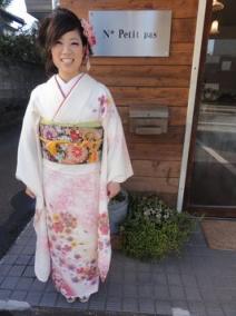 今日は成人式でしたね。 こちらでは一足早く8日に成人式が行われました。 と言うことで、 アタシも着物の着付けの方で成人されるお二人の方のお手伝いさせていただきました♪ 大切な記念の日となる成人式。 正直緊張しっぱなしでしたが、先生にもお手伝いに来ていただき♪ 無事終えることが出来ました♪ それでは、成人される素敵なお二人のご紹介♪ 偶然にもお二人とも白色の着物に黒帯。 よく似合ってて とっても可愛いでした♪二十歳だよ!若いね~♪ お世話になりました♪ また来年に向けてがんばって腕を磨くよう練習に励みま~す♪