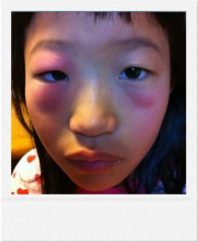 今日は朝から交通安全の旗持ち当番だった。 しかも今日が当番を知ったのは昨日の夜(チーン!) そして今日7時から8時10分まで小中学生を旗持ってお見送りしてきたよぉ。 ムッチャ寒かったぁぁぁ。 元気いっぱいの子。眠たそうな子。慌てすぎて転んじゃった子。などなど…(笑) おはようございまぁす!の元気な声が一番だね。 話は変わって。。。 ho-noのじんましん事件。 口の腫れが治まったかと思うと今度は… 朝起きてくるとこんなお顔になっちゃってたんだよぉ(涙) 口が腫れた日の給食に唐揚げを食べてて、目が腫れた前日チキンナゲットを食べておりました。 インフルエンザの予防接種も出来ないし、鶏関係かと思い(それ以外思いつかないし…) 病院へ行き 先生には今まで食べれてた鶏肉で突然はないと思うよ。と言われながらも それしか思いつかないし鶏でのアレルギー検査をしてもらいました。 結果 全くの異常なし。 だったら、ho-noは何が問題なのだろうか。。。 最近異常なくらいにho-noの顔やら体を見まくるmamaなのです。 誰かこういうことに詳しい人いないですかぁ~?????