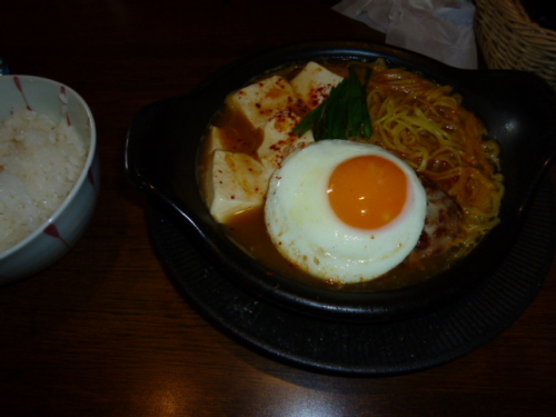 びっくりドンキー、たま~に行ってしまいます。今冬の限定メニュー、スンドゥブチゲバーグ837円。ご飯は別料金で、144円でした。(残念ながら、もう春メニューに変更になってます。もうこのメニューはないよ。)スンドゥブ、漢字で書くと純豆腐。韓国語と日本語は似てるよね。純豆腐、お豆腐がとってもなめらかで、上品よ。辛みは少なく、誰でも難なく食べれそうな味わい。でもね、何で、ここにハンバーグ入れるの?ねえさん、何で注文するの(笑)?ハンバーグは、デミグラスソースとか、チーズとかが合うよ。目玉焼きとラーメンは、チゲに合う。スープにごはんを入れてもおいしい。でも、ハンバーグは入れない方がいいね。そろそろ、本格的な韓国料理も恋しくなってきたなぁ。どっか食べに行こ!!★次はレギュラーバーグかな。ランキングに一票をよろしく!(ブログランキング ブログ村)