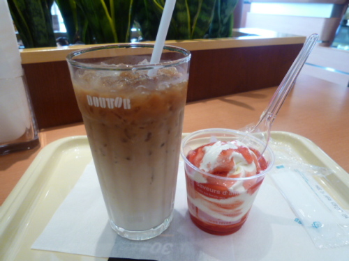 ガソリンは、まだまだ大丈夫だけど、ねえさんの身体は冷たいものが欲しそうよ。ガソリンスタンドにドトール。10年ほど前は新鮮だったけど、今は見慣れたね。「ひとやすみする?」「する~。」アイスハニーカフェオレと、ラズベリー&ローズヒップのアイス。涼しげで良いね。アイスコーヒーに、はちみつ入れるのって、実ははじめて。あらっ、意外に合うやん。はちみつ独特の甘さがコーヒーと牛乳に合ってるよ。暑い身体が冷えていくわ~。「さぁ、そろそろ行こう。」あわてない、あわてナイ・・・。まったりしようよ~。でもね、禁煙席が満席に。喫煙席はあいてるんだけど・・・。座れない人がでてきたので、そろそろ行こう。ドトールコーヒーショップ エッソ和歌山岡崎店 (コーヒー専門店 / 岡崎前駅、交通センター前駅)昼総合点★★★☆☆ 3.0★ガソリンついでにコーヒーって便利ですね。ランキングに一票をよろしく!(ブログランキング ブログ村)