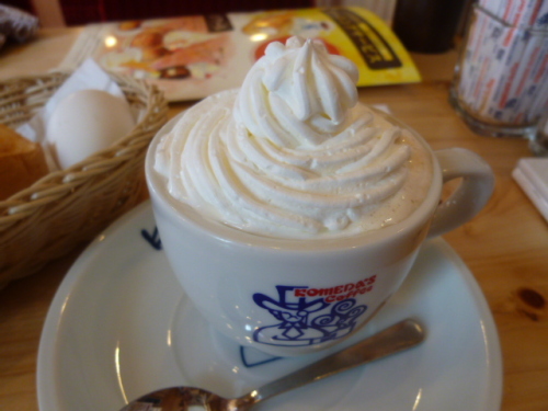 最近、どんどんオープン中のコメダ珈琲店さん。岩出市にもできたね。11時までにドリンクを頼むとトーストとゆで玉子の無料サービス。ちょっと行ってみようかなぁ~。だって今は10時30分。トースト食べれる!!えっ??? ドアを開けると、ウェイトレスが出てきたよ!!??「何名さまですか?」えっ??? セルフサービスのカフェじゃないの?コーヒー飲むのは、セルフのカフェが好き。シアトル系のスタバやタリーズに慣れきったねえさん。最近できたチェーン店だから、セルフのカフェだと思い込んでたんだよね。考えたら、昔から愛知県にあるんだった。店内は、50代以上の人が多いね。こんな中途半端な時間なのに、席はいっぱい。たま~に小さな子供連れもいるよ。う~ん、カフェじゃなかった。どうも落ち着かない・・・。店内は、ファミレスのテーブルを狭くした感じ??食べ物メニューもいろいろあるね。注文は、ウィンナーコーヒー430円。もちろん無料のトーストとゆで玉子も頼んだよ。トーストは、バターかジャムを選べるよ。クリームたっぷり、ちょっと苦めのコーヒーとの相性は良いよ。何の変哲もないゆで玉子を食べたり、トーストをパクパク食べたり。無料は良いよ~~。喫茶店とファミレスの中間のようなお店かなぁ~。そして、帰りはレジへ。コーヒー代くらいなら先払いが便利だと思うねえさん。やっぱり、スタバに慣らされてしまったようです(笑)。 コメダ珈琲店 岩出店 (コーヒー専門店 / 岩出駅、船戸駅、下井阪駅)昼総合点★★★☆☆ 3.0★シロノワール食べに行かないと。ランキングに一票をよろしく!(ブログランキング ブログ村)