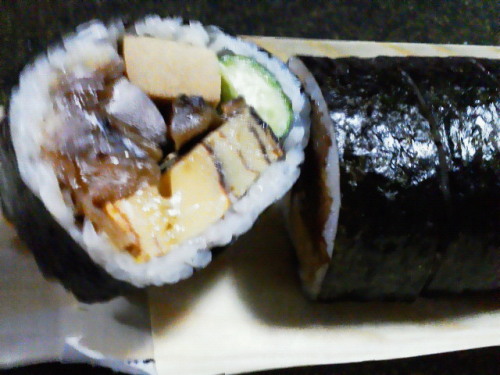 親戚のおばさまに「ひとりじめ狸本舗」の狸巻きをいただいたよん。有田郡有田川町の「ひとりじめ狸本舗」さんは、狸巻きの専門店。すぐに売り切れるから、予約必須と評判。ちょっと写真がボケちゃったけど、インパクト大の風貌の狸巻き。うん、まるで大きな狸だね(笑)。大きな具に、申し訳程度のご飯・・・。具を食べてるのか、巻き寿司を食べてるのか、わからなくなってきた~!?しいたけ、高野豆腐、かんぴょうは、甘めの味付け。でも、イヤミな甘さじゃないよ。玉子もとってもおいしいね。ちょっと微妙なのがきゅうり。きゅうりが水っぽいんだなぁ。旬のきゅうりなら、もっとおいしいかもね。ちなみにご飯好きなおばさまは、「もっと、ご飯が欲しいわ。」だって。甘めのお寿司がお好みの方にオススメの「ひとりじめ狸本舗」さん。「ありだっこ」や「どんどん広場」「吉備湯浅PA」でも購入可。おみやげにインパクト大だね。大食いねえさん、5切れで満足。(1本は7切れだったよ。)ひとりじめ狸本舗 (寿司 / 藤並駅、湯浅駅)昼総合点★★★☆☆ 3.2★そろそろ有田みかんのおいしい季節だよ。ランキングに一票をよろしく!(ブログランキング ブログ村)