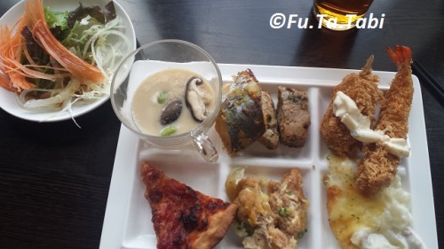 JR和歌山駅の東口徒歩3分のアーバンホテルさん。ランチは、お安いバイキングがある。料金は大人940円(60分)+30分の延長料金210円=1050円で、90分の食べ放題。早食いの人は、60分でOKだね。先払い制なので、先に60分か90分を選ぶ必要がある。90分1050円を支払って、入店。さぁ、食べよう~。「なんか種類が少ないね。」「うん、少ないね。」品数はないけど、1050円だからね。いただきま~す。スーパーで見かける冷凍かにのツメや、エビフライ。洋食、和食、うどん・・・と一通りはそろっている。定番のカレーで、カツカレー。このカレー、塩辛いっ!お料理がなくなると、違う料理が補充されたりするので、また食べないと!最初からいろいろあると、お腹の調整ができるのだけど(笑)。デザートも少ないながらも、あるし・・・。あぁ、満腹。ごちそうさま。