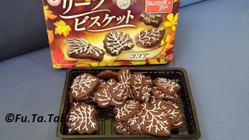 秋らしいパッケージ。落ち葉? 紅葉?夏になんで、秋を売るのかな?季節感ないよね~。日本は四季が大切なのに・・・。あんまりおいしそうには見えないんだけど、まぁ安いから買ってみよう~。リーフビスケット ココア 95g原産国 ブルガイア 88円(税別)パッケージを開けると、秋から冬のイメージが強くなる。ココア生地のクッキーに、白い葉脈。実食ひとつパクリ。濃いココア味。とても濃い。噛んでいくと、少し塩分が気になる。おいしいんだけど、あんまり量は食べれないね。塩分が苦手なの。秋から冬に、ブラックコーヒーと一緒に3個くらいが限度かなぁ~。小袋じゃあないので、湿気てしまった。早めに食べようね。