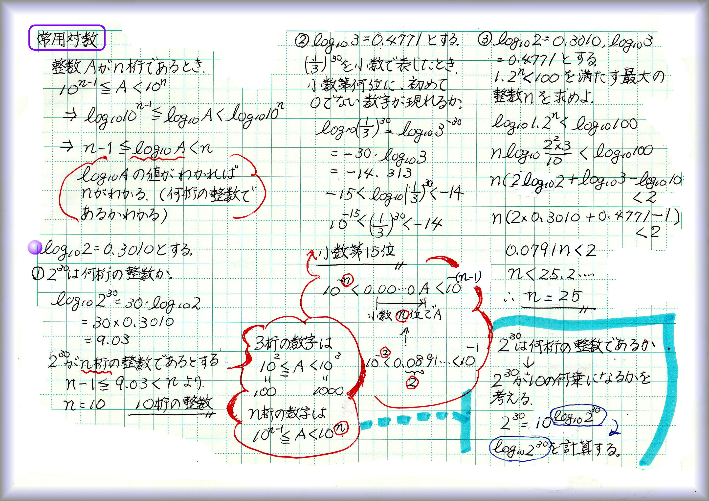 高校の教科書には常用対数表が載っています。log10底の2,log10底の3…の概数から、桁数や小数点以下何桁から0でない数が現れるかがわかります。