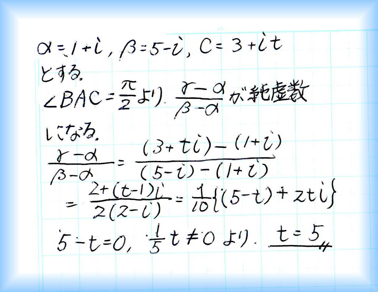 また、γαとβαが直角をなすとき、γ-α/β-αは純虚数です。(cosπ/2、cos(-π/2)とも0になるため)