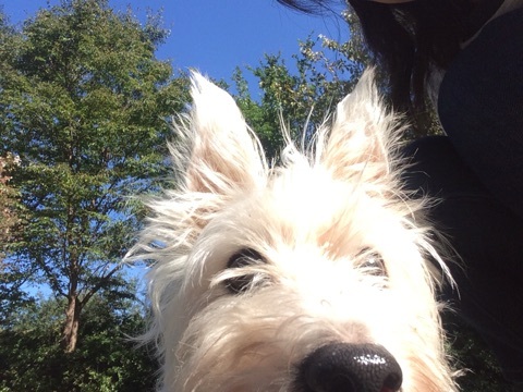 ウェスティのくららの行動を見ていて違和感がしたのは、、7月の終わりのことでした。ワンコたちにはみんな1ワンごとに専用のサークルがあって、フリーにしていない時は、そこで過ごしているんですけど、くららのサークルから2~3mくらい離れたちょうど向かいに マリーのサークルが置いてあります。マリーのはいまだに片付けられずに、お空へ還って行った時のままですが、 部屋に掃除機をかける時に、 ピーナッツをサークルごと、マリーのサークルの前に移動させていたんですね。そうしたら、しばらくするとくららがものすごい勢いで吠え出したのです。その目線の先は、ピーナッツ。時々ピーナッツがこっそりおもちゃをサークルに持ち込んだりすると、「なに持ってるの⁉︎」ってくららが 吠えることがあったけど、この時ピーナッツは何も持ち込んでいなかったので、どうして吠えられているのかわからない様子で、キョトンとしていました。吠えている原因がわからないままピーナッツのサークルをくららのすぐそばまで移動させてみると、クンクンとサークルのそばでニオイを嗅いで、 そのあとは納得したように吠えるのを止めました。そんなことが何度か続いた時にふと頭をよぎったのは、くららはもしかしたら、向こうにいるワンコがピーナッツだってわからなかった・・?もしかしたら、よく見えていないってこと…?ということでした。そう考えると思い当たることが、いろいろと…。足元に置いたおやつを、一瞬探すような素振りを最近よくするし、こないだは、ドアに鼻をぶつけてた。その時は、くららが慌てたから、だと思っていたけれど、見えていなかったからだと思えば納得できる。目の病気といって、すぐに思いつくのは、白内障とか緑内障だけど、目は白くなくてむしろ黒々と輝いているし、緑内障は痛がると聞いたことがあるけど、痛がってはいない…。もしかしたらただの気のせいかなと思いつつ、とりあえずは安心のために眼科の専門の先生に診ていただくことにしました。先生には以前、カルビとさくらがお世話になったことがあります。特にカルビにとっては、まだ小さい頃に、失明の危機を救って下さったまさに恩人である先生で、とても信頼している獣医さんです。さて、くららの目は先生によると、「網膜変性」というものだそうで、この病気は、網膜が薄くなっていって、少しずつ目が見えなくなっていって、いずれ完全に視力を失ってしまうのだそうです。「もともとくららちゃんが、 そういう因子を持っていた。」と、先生は仰ったので、遺伝ということなんだと思います。この病気は、手術をすれば治るというものではなくて、治療法がない病気だという説明も受けました。まさかそんな病気になっていたとは、しかもいずれ失明してしまうなんて。自分の想像をはるかに超えた結果に、かなりショックではありましたが、落ち込んでいる間にも、病気が進行してしまうのではないか という恐怖を感じて、視力がまだある今できること、しなければならないことを、くららと一緒にやっていこうと思いました。 1歳を過ぎた頃から体調を崩すことが多くなり、この頃から実は、「膵外分泌不全」という病気とも闘ってきたくらら。これからはさらに新たな病気とも向き合うことになりましたが、いい意味で深刻にならずに、くららが楽しいと思う時間をできるだけたくさん過ごせるように、しっかりサポートしていきたいと思います。これまでは、体調を考えてお客さまの前にはあまり登場することのないコでしたが、これからはもしかしたら、ひょっこり姿を現すこともあるかもしれません。視力があるうちに、できるだけたくさんの物を見せて、できるだけたくさんの「音」を聞かせて、できるだけたくさんの経験もさせて、くららの目がこの先光を感じなくなってしまったとしても、怖じけることなく、恐怖を感じることなくこれまでの経験からある程度の「予測」が自分でたてられるようにしておいてあげたいと思います。そして、どれくらいで失明してしまうのか、先生も、「わからない」と仰っていましたが、「くららは大丈夫」だと信じて、気持ちは前向きでいようと思います。ワンコはちょっと苦手ですが、「人」は大好きなコですので、もし「アップルシード」にご滞在中にくららの姿を見かけられましたら、「くらら」とお声をかけていただけるとうれしいです ◆ ◆ ◆ ◆ ◆いつもポチっ!の応援ありがとうございます♪ 励みになります!