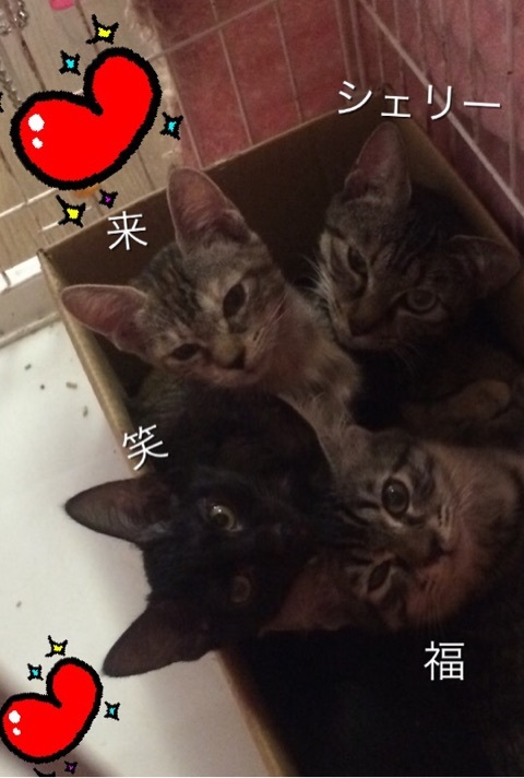 よく遊び、よく食べ、 すくすく成長中のちびニャンたち。 お母さんニャンコの「シェリー」にそっくりな「福」は、 時々シェリーと見間違うほど 身体も大きくなってきました。 そんなニャンコたちのブームは段ボールっ♪ 毎日段ボールを、縦にしたり横にしたり、中に入ったり、ひっくり返したり、ボロボロに噛んだり、つぶしたり。 本当に楽しそうに遊んでいます。 新しい段ボールを入れてあげたら、しばらく遊んでいましたが、 そのうち静まりかえったので様子を見に行くと、 ぎゅうぎゅう詰めのてんこ盛りになっていました(笑)シェリーはもともと身体が小さいから、子猫が4匹いるみたいです 今日でちょうど生後4ヶ月。かわいさ炸裂なお年頃です ◆ ◆ ◆ ◆ ◆いつもポチっ!の応援ありがとうございます♪ 励みになります!