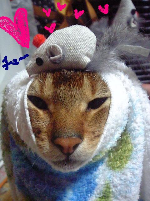 今日の夕食は久しぶりにちゃんとしました♪画像撮るの忘れちゃいましたが…1、ごはん2、お味噌汁3、豆腐ハンバーグ4、太刀魚のお刺身5、トマトとオクラのサラダでした♪豆腐ハンバーグは具を豪華にしてみました!レンコン・ひじき・枝豆・にんじん・玉ネギ・ねぎでも…思ったんです。一人で食べても美味しくない!!って。お料理って誰かと食べると美味しいし、作りがいがあるんですよね…自分で作ったから、評価もないし…ま!でも、花嫁修業と思ってまた新しいお料理に挑戦します♪今日は特別ゲストに…実家で飼ってるアビシニアンのはーちゃん♪以前紹介した、ネコなのにお手やおかわりをする子です。最近はお座りを覚えたらしい!?ちょっと大きすぎましたね…イタズラしても、大人しい…ちょっとは抵抗して欲しかった。