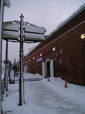 着きました!!北海道♪街も山も一面雪!雪!雪!!テンション上がります↑↑今日は朝から吹雪いてたらしいけど、着いた時はラッキーな事に晴れ♪今年は早めに雪が降ったらしく、12月でもこんなに積もってるのは珍しいらしいです。とりあえず、観光♪TVでよく見る赤レンガの倉庫へ!昨日までは大きなツリーがあったらしいのですが、私が行った時は既に撤去されてました…次はチャーミー坂。CMで使われて有名になったらしいです♪さすがに、日が落ちると寒い(>