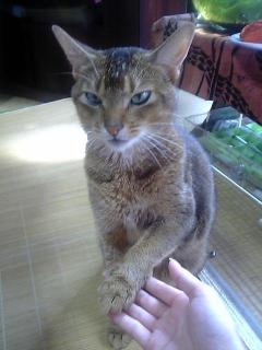 この子は実家で飼っているアビシニアン♪ニャにゃんと!!おかわりをする…そ、そして!!お手もする…私はワンコを飼ってるけど、芸は覚えやすい。でも!ネコが芸をするのは、初めて見た…すごぉぉぉぉぉぉぉぉぉぉぉぉぉい!!