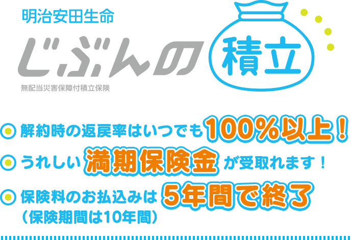 こんばんわ☺今日も来ていただいてありがとうございます✨35歳からです🎵今日は元本保証の保険についてです。私の職場には明治安田生命の方が保険の勧誘のため、週一ペースでいらっしゃいます。今までは保険はもう入っているし、全く興味なかったのですが、今回は何気なく見たチラシに目が止まりました。最近積立にはまっている私は、チラシの『じぶんの積立』という商品に惹かれました✨なぜかというと、この保険は掛け捨てではなく、貯えとしての貯金の機能もあるからです。『じぶんの積立』オススメポイント①少額で始められる❗月々5000円からで、保険料払込期間は5年間❗(保険適用期間は10年間)オススメポイント②保険期間の満期時は受け取り103%✨例えば、月々5000円の積立で、満期時は¥309,000‼オススメポイント③健康状態に関係なく、保険に加入できる❗オススメポイント④満期後に戻ってきたお金を自由に使える❗忘れた頃に満期が来て、その頃にはその時の目的に使用できるので、結婚資金や旅行などの目的で遣えますね☺オススメポイント⑤生命保険としても機能します🎵災害死亡保険は払込料金の1.1倍✴若い時にあったら良かったのに…(笑)ま、まだ遅くはないので、近々申し込みたいと思います✨資料請求はコチラ皆さんもいかがでしょう✨ちなみに私は明治安田生命の人と何の関わりもありません(笑)最後まで読んで頂きありがとうございました✨おやすみなさい😌💤