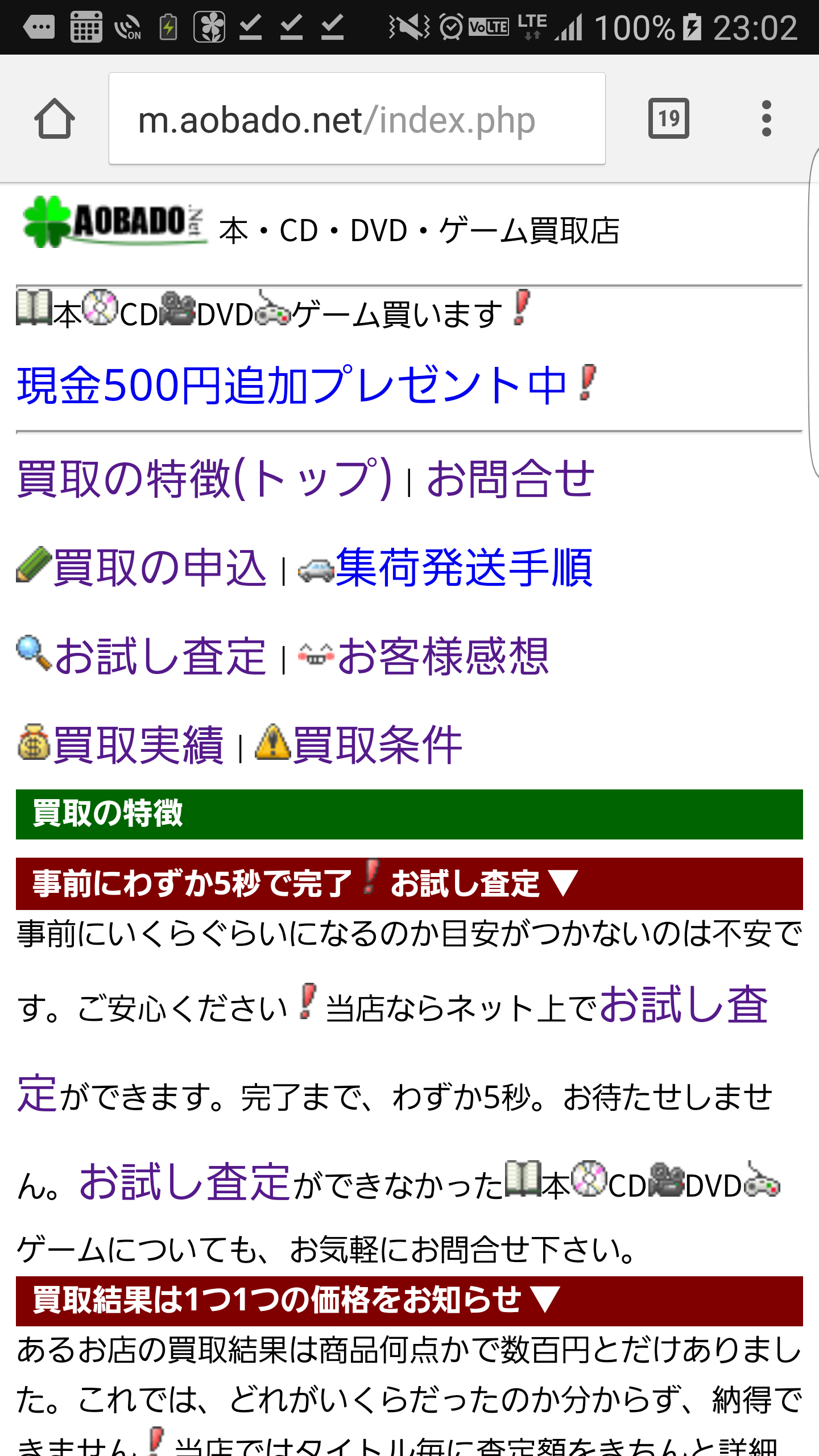 こんにちは☺今日も来ていただいてありがとうございます✨35歳からです🎵ついにあおば堂さんからの査定結果メールが届きました❗8㎝CD買い取りのあおば堂開く時のドキドキ💓結果‼★ 買取合計額(本査定内訳は後述)――――――――――――――――――――――――――――――\ 380なんと‼380円‼(笑)★ 商品数――――――――――――――――――――――――――――――買取できる商品数_:60 点買取できない商品数:2 点(重度の難、レンタル落ち等)管理番号 [カテゴリ] タイトル *状態ランク 需要ランク 査定価格 特記------------------------------------------------------------1326302 [本セット] 秋色 しゅうしき 平岩 弓枝 2点 *E \ 5 小口に目立つシミあり 小口に少々の日焼けあり1326107 [本] 愛からの出発 心から心への希求 1968年 *E- \ 1 表紙にわずかに破けあり 表紙にかなりのイタミ・こすれ傷あり 表紙に目立つ汚れあり 小口に目立つシミあり1326105 [本] 北都物語 1974年 *E- \ 1 小口にきつい日焼けあり 小口に少々のシミあり1325952 [本] 天上の青 上 *D \ 5 表紙に少々の汚れあり1325844 [本] 水なき雲 *E- \ 1 小口に目立つシミあり 表紙にわずかに破けあり1326104 [文庫・新書] 蒼い時 1980年 *D \ 5 表紙に少々のイタミ・こすれ傷あり 表紙に少々のシミあり1326301 [SCD] 日本工学院 波長じ専門学校 校歌 *C \ 51326099 [SCD] 二人は大人 *D+ \ 35 ケースに少々の汚れあり1326094 [SCD] ナウ・ザット・ウィー・ファウン *D- \ 51326084 [SCD] May Be *D \ 1951326083 [SCD] A.S.A.P. *D \ 70 ケースに少々のイタミ・こすれ傷あり1326080 [SCD] Love Somebody *D \ 51326073 [SCD] CAN YOU CELEBRATE? *D+ \ 1 引取 ケースにわずかに破けあり[本] その他引取品 3点 \ 3[CD] その他引取品 43点 \ 43でも、結果は安かったですが、前回依頼した所は査定0円だったので、全然🆗👌です🎵こんなに細かく丁寧に査定して頂けました🎵買い取っていただいて、なおかつ家も片付いて一石二鳥です。あおば堂さんに査定承認のメールを送らせて頂きました✨楽天銀行なら振込手数料が無料なのでお得ですよ☺最後まで読んで頂きありがとうございました✨