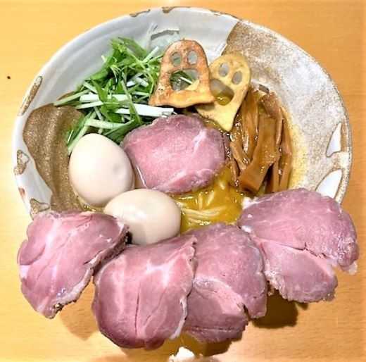 鶏そば 藍 食べログ京都煮干しそば 別皿 わさび?(1,080円)+ 麺大盛(クーポンで無料)Sくん、ラーメン食べ歩き。(11/1訪問)「鶏そば 藍」さんへ。 18:22 入店(並びなし) 18:30 着丼食べたのは「京都煮干しそば」。10/18 12:00~ 新発売。仕込みに時間かかるので、毎日12:00〜販売スタートだそうです。藍さんへは、2度目。オープンしたての頃は、行列だったけれど、今回は、並ばずに入店出来たそう。オープン記念で?頂いたクーポンが使えたので、麺大盛(180円)が、無料に。この煮干しそばは、京都本店で出されている物だそう。あっさりとした、煮干しのスープだったとか。★★★☆☆(3点) 。 2025年ー87杯目