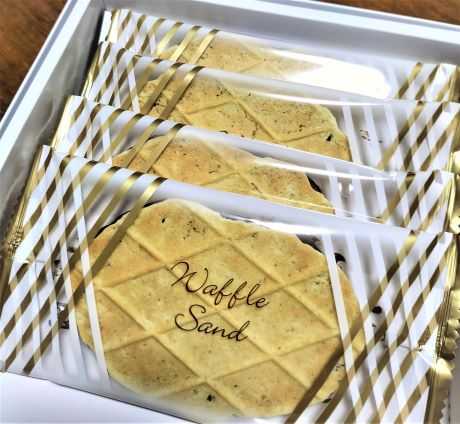 冷蔵庫にずっと入っている、沖縄のお土産。そろそろ賞味期限かと、食べる事にしようと。って、もう封開いていました。Sくんが開けたみたいです。6枚入り。2枚食べてあった~。ワッフル生地は、サクサク。薄い2枚のワッフルクッキーで、チョコレートをサンドしています。チョコレートは甘い。ワッフル生地に「沖縄の海水塩 青い海」を使っているそう。なので、お塩効果で甘みが引き立っているのかしら?濃厚に感じます。楽天市場でも買えます。 ↓ ゆげや本舗 青い海 沖縄塩チョコワッフルサンド 小 6枚入り×6箱