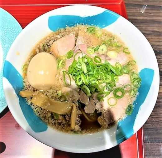 ラーメン盛田 食べログ京ラーメン(880円)+ 味玉(90円)+ チャーハン(ラーメン注文で無料)Sくん、ラーメン食べ歩き。(11/3訪問)「ラーメン盛田」さんへ。 18:45 入店(並びなし) 18:53 着丼食べたのは「京ラーメン」。そして、ラーメンを注文すると、このチャーハンが無料。普通に美味しいとか。京ラーメンは、チャーシューもしっかり乗っていて、背脂入り。これでチャーハン無料で、880円なら、納得だそうです。注文は、フードコートの様に、食券を購入すると呼び出しベルを渡されるので、ベルが鳴ったら受取りに行き、食べ終わったら、返却口に返すシステムだそうです。★★★☆☆(3点) 。 2025年ー88杯目