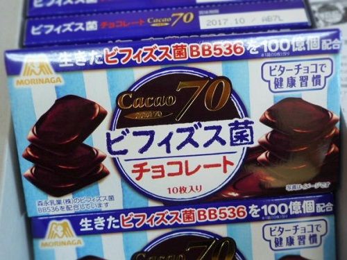 チョコレートに、 生きたビフィズス菌、100億個配合