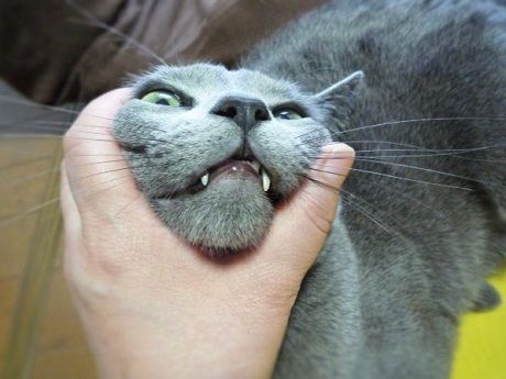 私がしっぽを触ると、ネコパンチと噛みつき攻撃。