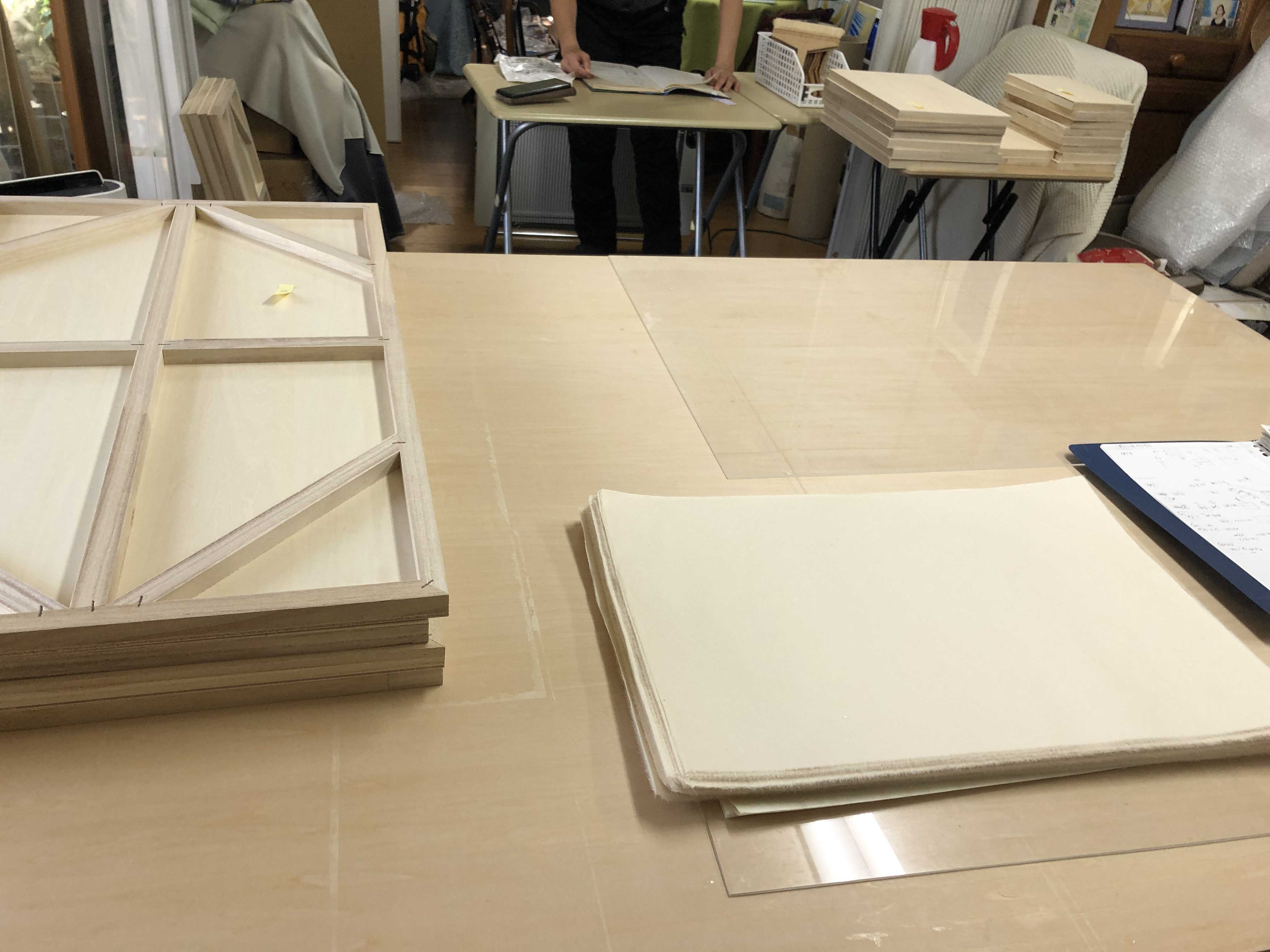 作品を描く前の作業から紹介します。パネルは画材店に注文して特注サイズに仕上げてもら…