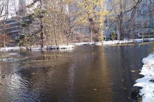 今朝は氷点下に成っただけあって池も少し凍っています。日本の水産物輸入が再開された…
