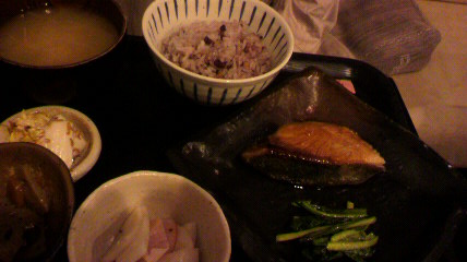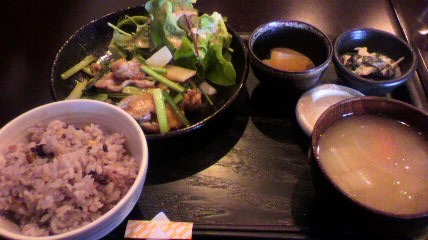 私の母も、同じ日で、お友達の御花屋さんにアレンジメントを注文しておきました。それがこちら↓そしてお気に入りのお店でランチ!「豚肉の蜂密マスタード」週替わりランチもう一個は、「鯖の竜田揚げ」 そしてデザート ロールケーキそして、抹茶あんみつ(抹茶シロップがけ&昆布茶付き)母は、「喜寿」で、孫とついでに娘(あたしと妹)と、ランチ出来、ご満足!で、ご馳走になってしまいました。ラッキー!!さあ!ダイエット!←出来るんかいな!?がんばれ私!