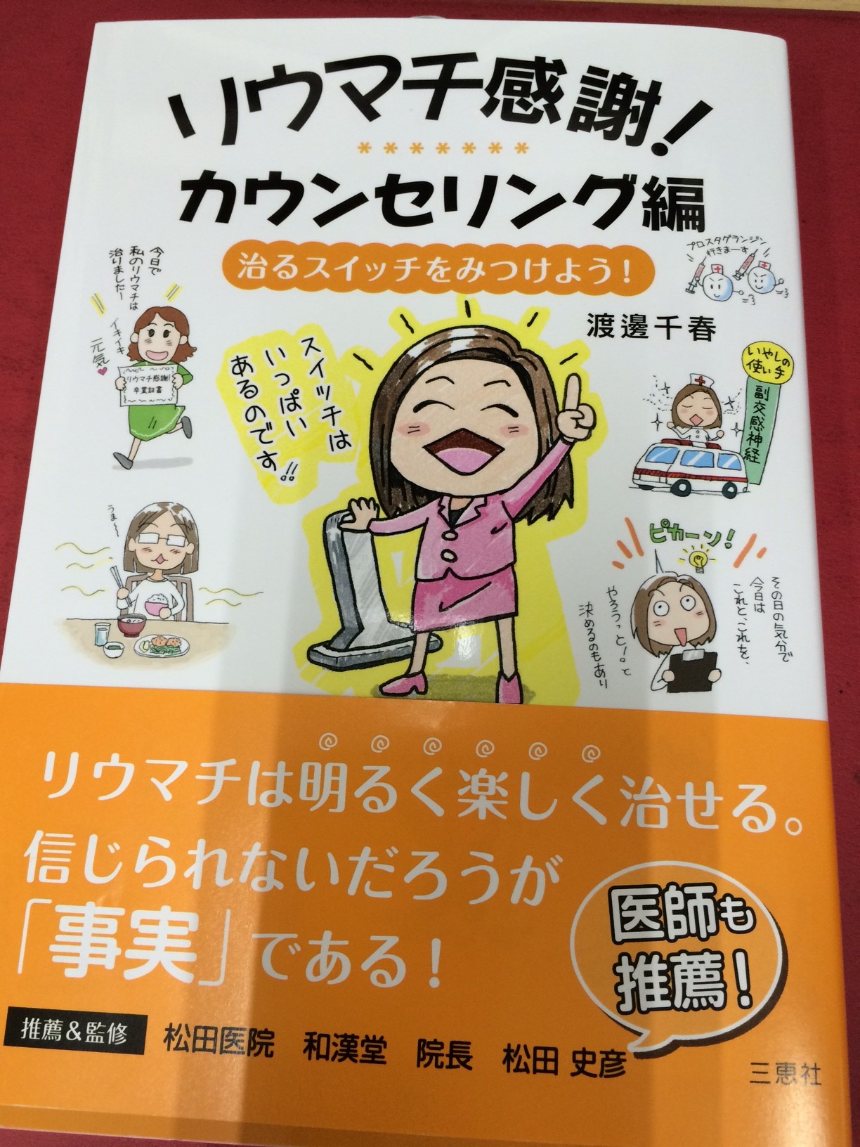 リウマチになったころ、(というか血液検査待ちだったかな?)お年寄りがかかると思っていたこの病気、ネットで調べました!で、「リウマチ感謝!」という本、先にブログだったかな?を発見!渡邊千春さんの本を購入! で、今回、千春さんの新刊が出ました! 薬を飲みつつ、私なりに出来ることを、いい加減にやってきて、大好きなジャズダンスそして、今はフラダンスを出来てます!とにかく寝る!早く寝る!を、第一にやってきただけですが、上部頸椎のカイロの先生と、鍼灸院の先生のおかげもあって、体調が悪い時もありますが、イタイイタイ~っていう日が、たまに…あるぐらい。 まあぼちぼちやっていきます…。カイロの先生には、「甘いもの食べすぎじゃないの?」と、facebookの私の投稿で、食生活チェックされ、テヘへ(^_^;)な感じですが、リウマチで、千春さんの本を読んでいない人が、この世にいるなら、ぜひ!読んでいただきたい!と思います!ブログ休んでる間に、以前より、読んでくれてる(?)数が増えててビックリ!リウマチの皆さん!ぜひぜひ!