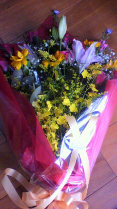 本日無事、最後の文化祭発表が終わりました妹から、花束第9回伊豆の国市民文化祭芸能発表会何か、ダサイ、「サブタイトル」がついてる!差し入れの数々お友達から、アレンジメント午前の最後ぐらいに、踊って~そのままスタッフとしてお手伝い。帰ってきて、夕飯食べたら、疲れがどっと出た喉も痛い洗濯したら、とっとと寝なくちゃおつかれさまでした。これからどうしようかな~?