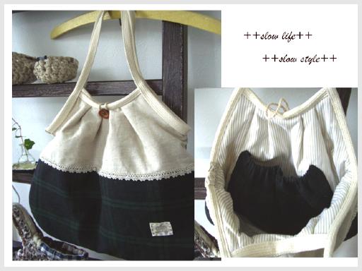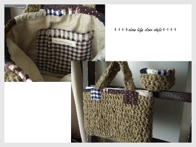 みなさん、元気ですか====33(by 猪木)。。。私は元気です。。。(笑今日は?21日ですね。。月曜日。。。月曜日って、何か「今週もはじまるよぉ~!」って感じでスキ。。学生の頃はモチロン、日曜日が好きだったりしたけど、今は、次男とのんびり出来る平日が好き。。。あ、でも、のんびりはしてられません(笑******最近のできばえ******裂き布バッグを増殖。。。左より、Wガーゼ、綿ブロード、リネン。。。あと、チョコ色のブロックチェックを裂いて(綿麻)コロンとしたのも作ってみました。(コサージュ別売り(笑)全て裏、内ポッケ付き。個人的には、やっぱりガーゼがポワポワしてて好き♪次いでリネン。。。ゴツゴツ感と遊び毛(?)も適度で好き♪綿ブロードは、少しツルッとしてる感じ。。でも、一番お安い出来上がり(笑お次はWガーゼのストール。。。今回は、ドイリーを付けて裾も編み込みました。。。大人な感じです***********************今日はミシンで小物を作ってみようかな。。。