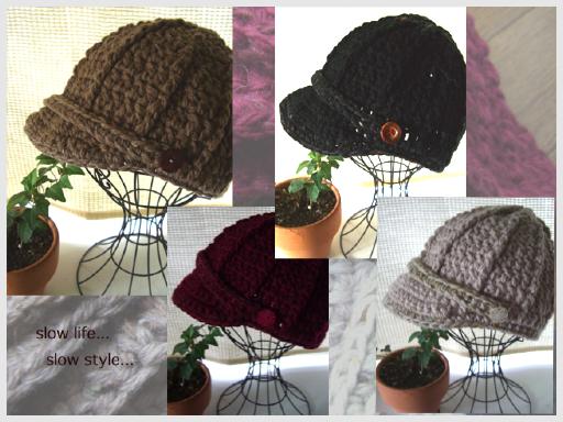 今日は委託先の「ねこのあしあと」さんに納品のニット帽です☆まずはキャスケット。。。大人用4点です。。ポイントはね、とっても奇麗なボタンとテッペン&渕をネップ入りの糸でアクセント。。。あと、筋も付けてみました~♪次は耳当て付き。。。こちらは模様編み。。。少しだけ、大人チック。。かな?ヒモの先には、テッペンとお揃いでポンポンにしてみましたよ♪こちらはグレー。。ネズミ年だしね(寒っっ☆)キャスケットと一緒の筋編み。。。ヒモの先はお花ちゃん。。。↑は結構厚手。。。極寒地方の方。。お勧めです~☆そして人気のベージュ。。透かし編みにしてみました~☆ブラウンと同様、軽いしオシャレのアクセントに使って頂き易いかな~。。と。あとは、完売の「麻ヒモカゴ」を3点。以上、10点、ねこさぁ~ん、今日、発送しました!2月のイベントにも使ってくださいね♪ニット、ギリギリ納品だわぁ~。。来シーズンは、もう少し早めに作り置きしましょうね、jinnちゃん☆***************************しつこいようですが、jinnちゃんファミリーも帽子をお揃いで。。。ま、全員でかぶったら恐いよね長男はほとんどかぶらないし、明日、北海道のお友達に持って行きます(笑そして、これまたオーダーのドイリー。。。40枚。。。ニット帽、麻ヒモカゴ、ドイリー。。。ハンドマッサージに行きたいです(笑*********************さぁ~。。。明日はいよいよ、北海道に行ってきます3日間、パパがお休みを取って子供達をみてくれます。おぉ~!!ダイジョウブかしら。。スケジュール表も作らなきゃ!おみやげも買わなきゃ!洋服も選ばなきゃ!明日は娘、お弁当。。。作ってから出発出来るので、それは救いだぁぁあ☆カレーでも、作っておくか。。。11日の夜に帰って来ます。。。それまでみなさま、ごきげんよう~(笑帰って来たら、オーダー&大阪のイベントの作品作り頑張ります!!!